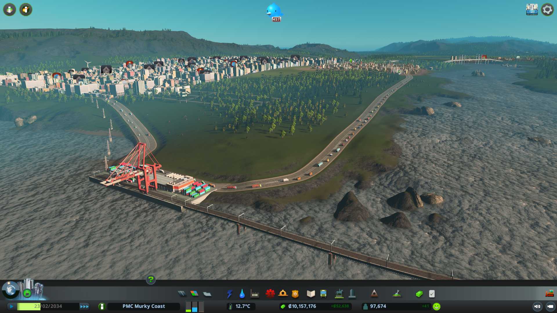 I would like this city design to be more spread out, connected with six lane roads or even highways as with the 25 terrain grid tiles you can have pretty decent size (Cities Skylines wise) cities done.