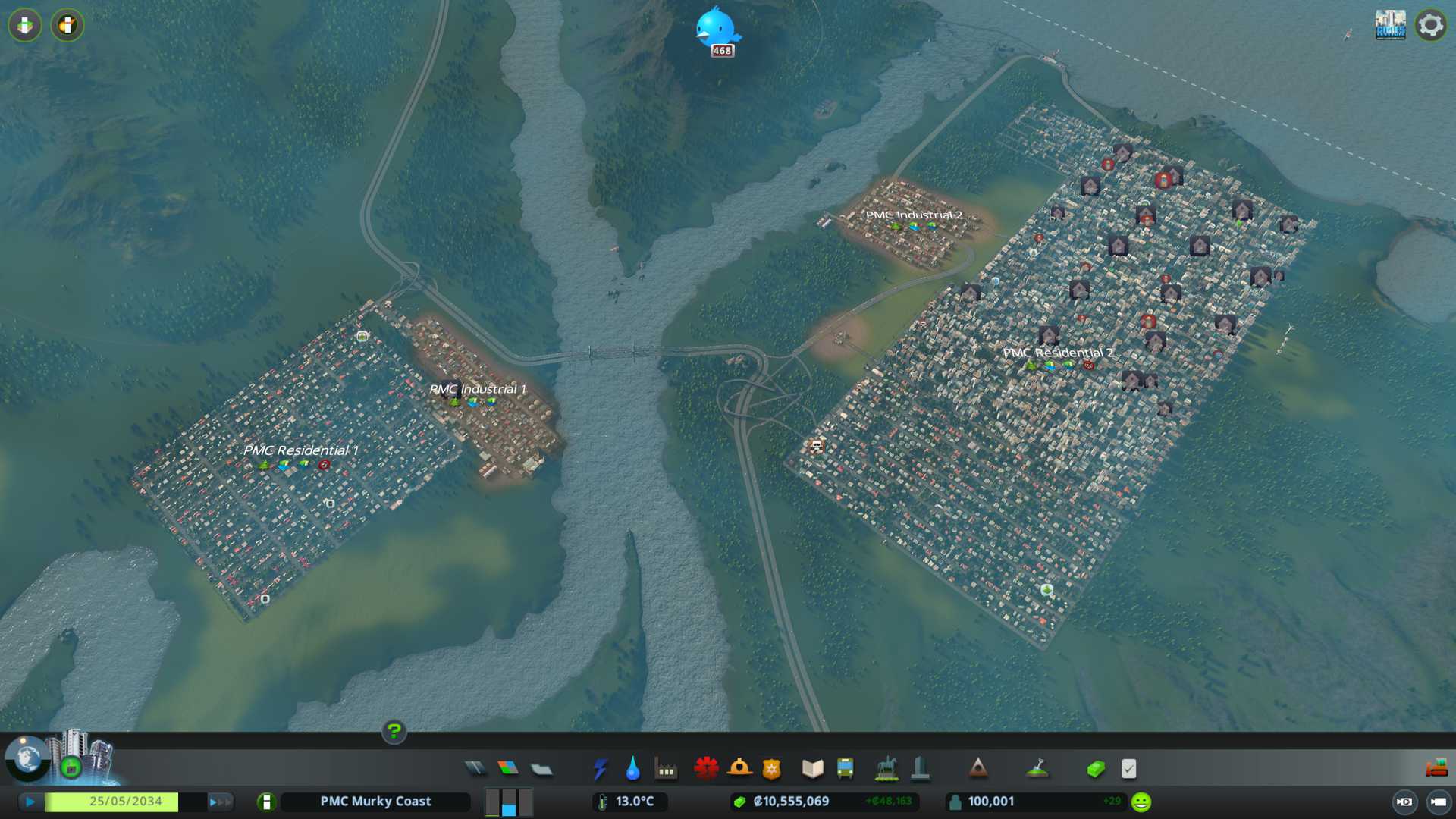 At this point I felt kind of bad, I had zero "care" for this city, I was just aiming for my goal to reach the 100k population, I did this by spamming high density residential 4 x 4 unit square zones with offices in a chess board pattern, this way office zone 4 x 4 has jobs and residential 4 x 4 right next to it provides the workforce. Yes technically this does work in Cities Skylines, but overall I would say its highly unrealistic and stupid looking way of doing things.