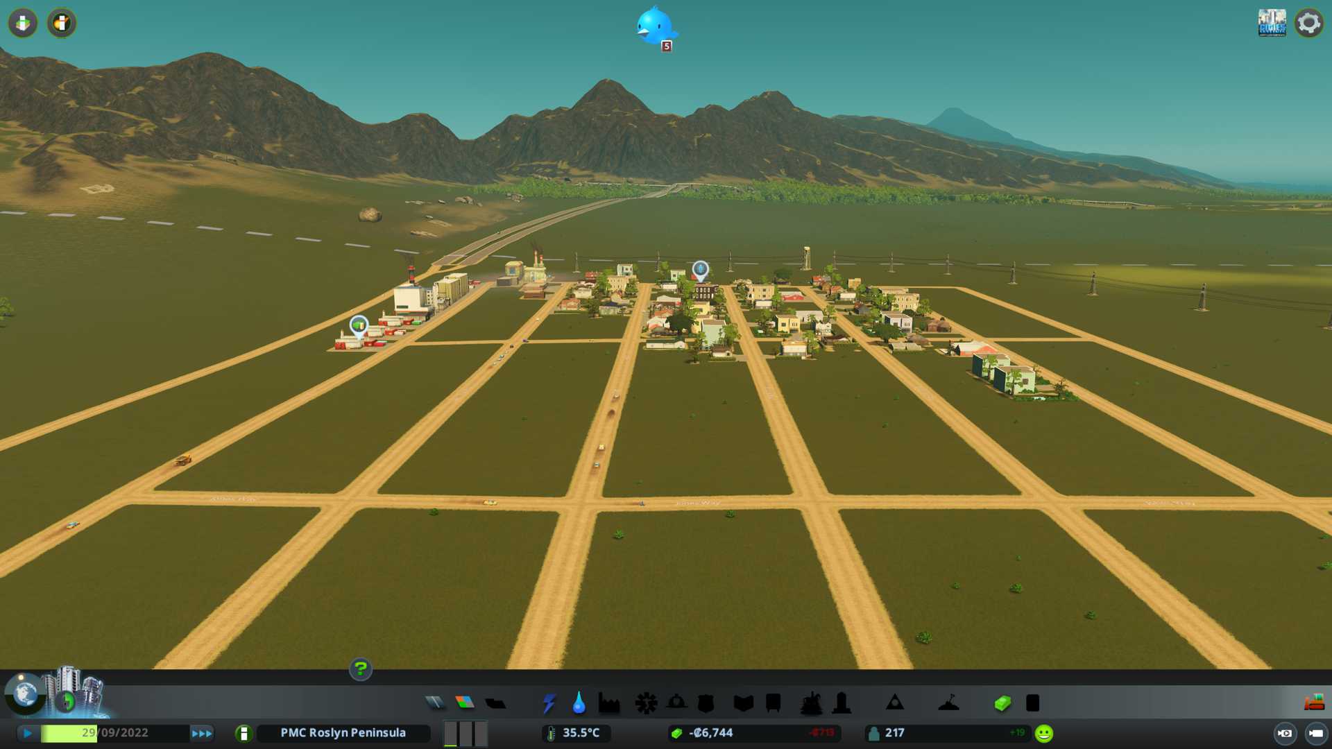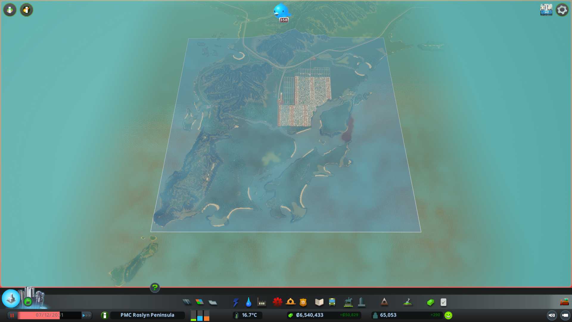 2022-08-12T07:10:00Z Started savegame on Roslyn Peninsula, all outside connections, suitable area for building 54%, base theme: tropical.