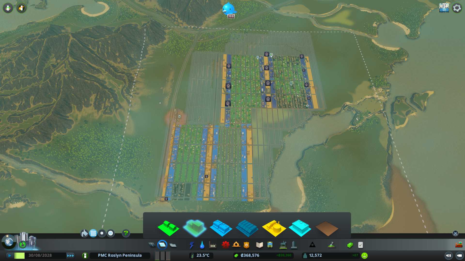 Next expansion for our zoning is done. I now pre-assigned those 2x2 unit squares for residential, when they have all (or almost all) filled with buildings then I just flag a box for the rest of them. Easy
