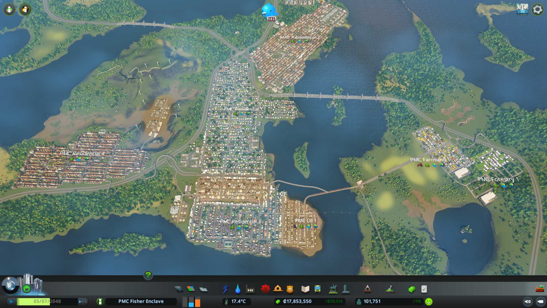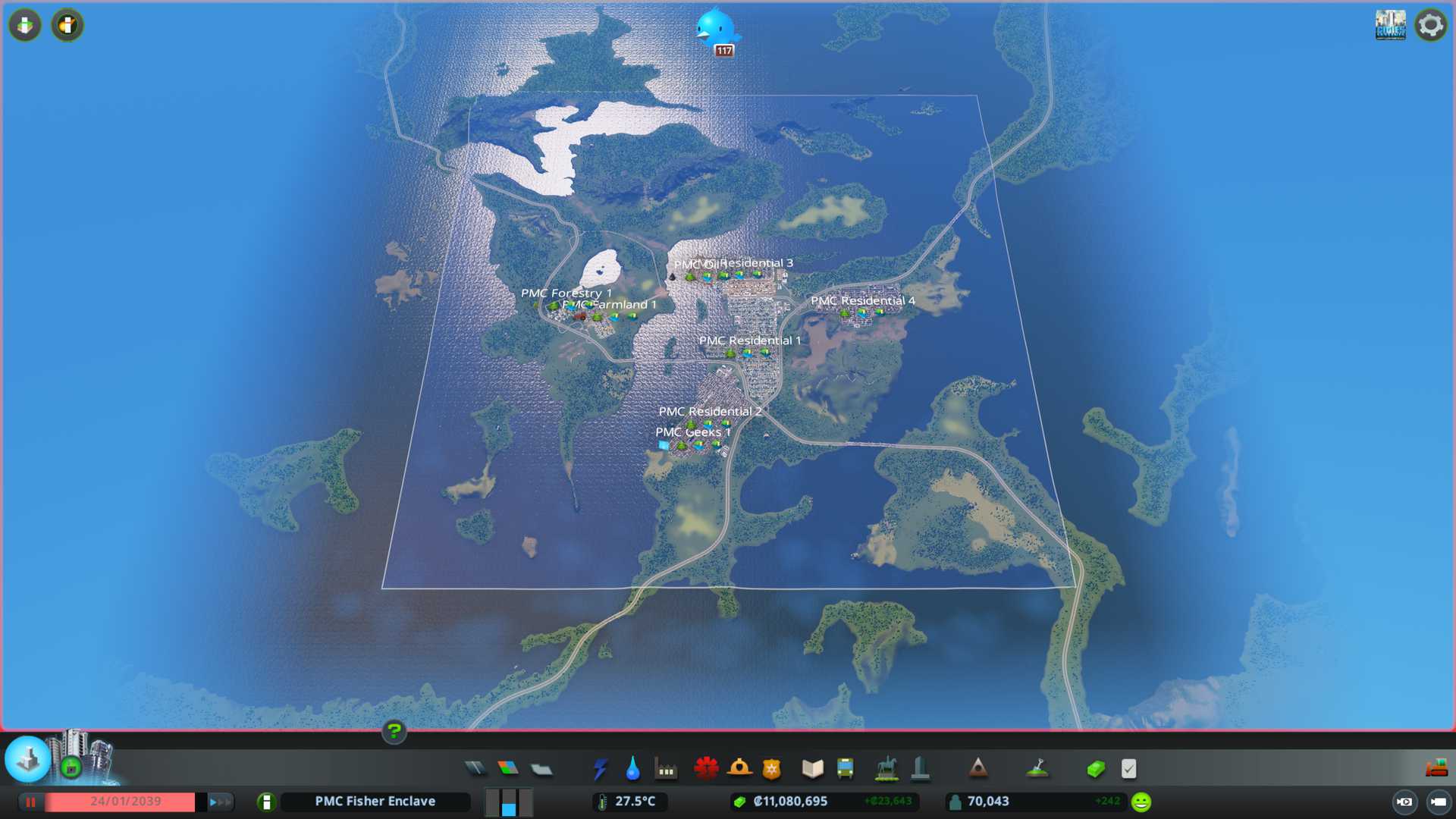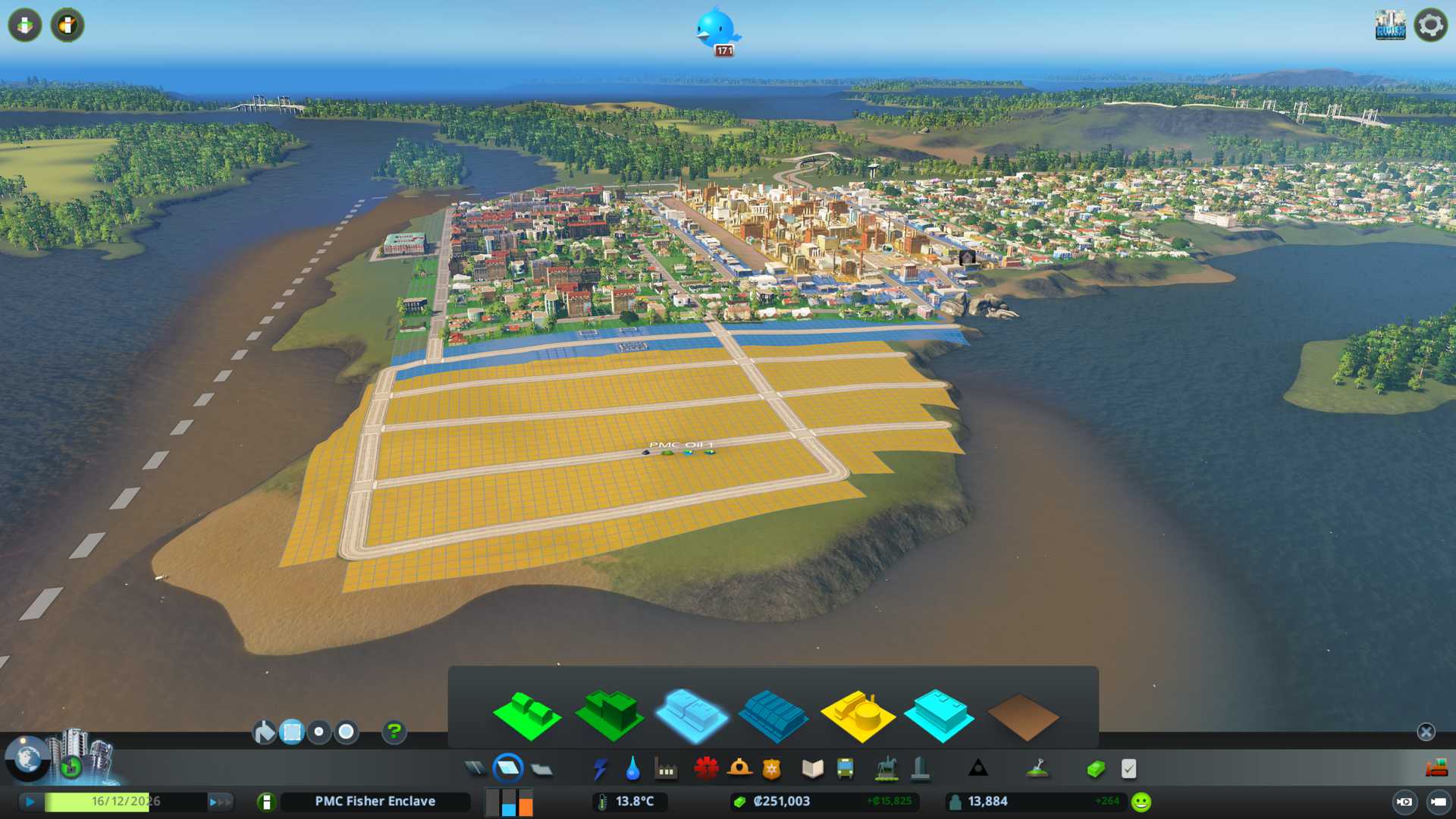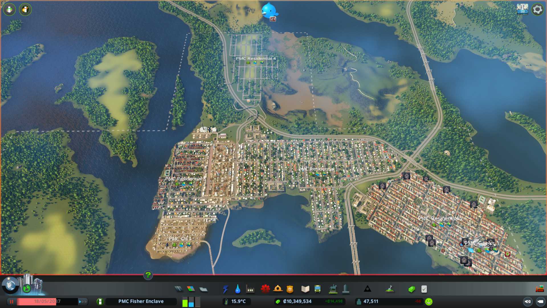 New PMC Residential 4 is good to start building. Our current population is 47.5k so we have still plenty to do today, its not sure if this terrain can be "won" with the amount of landmass we have available, but we'll give it a try.