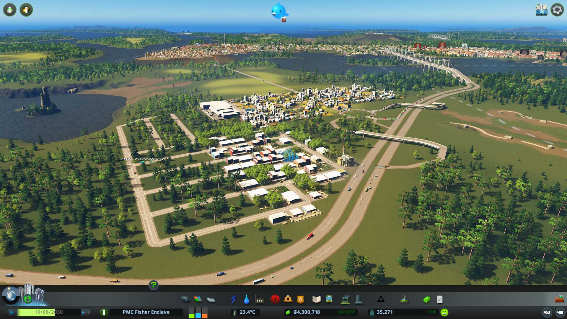 2022-08-14T05:01:00Z New Cities Skylines building day has started, just woke up and finished morning chores, haven't eaten yet, lets get things going on in this savegame first.