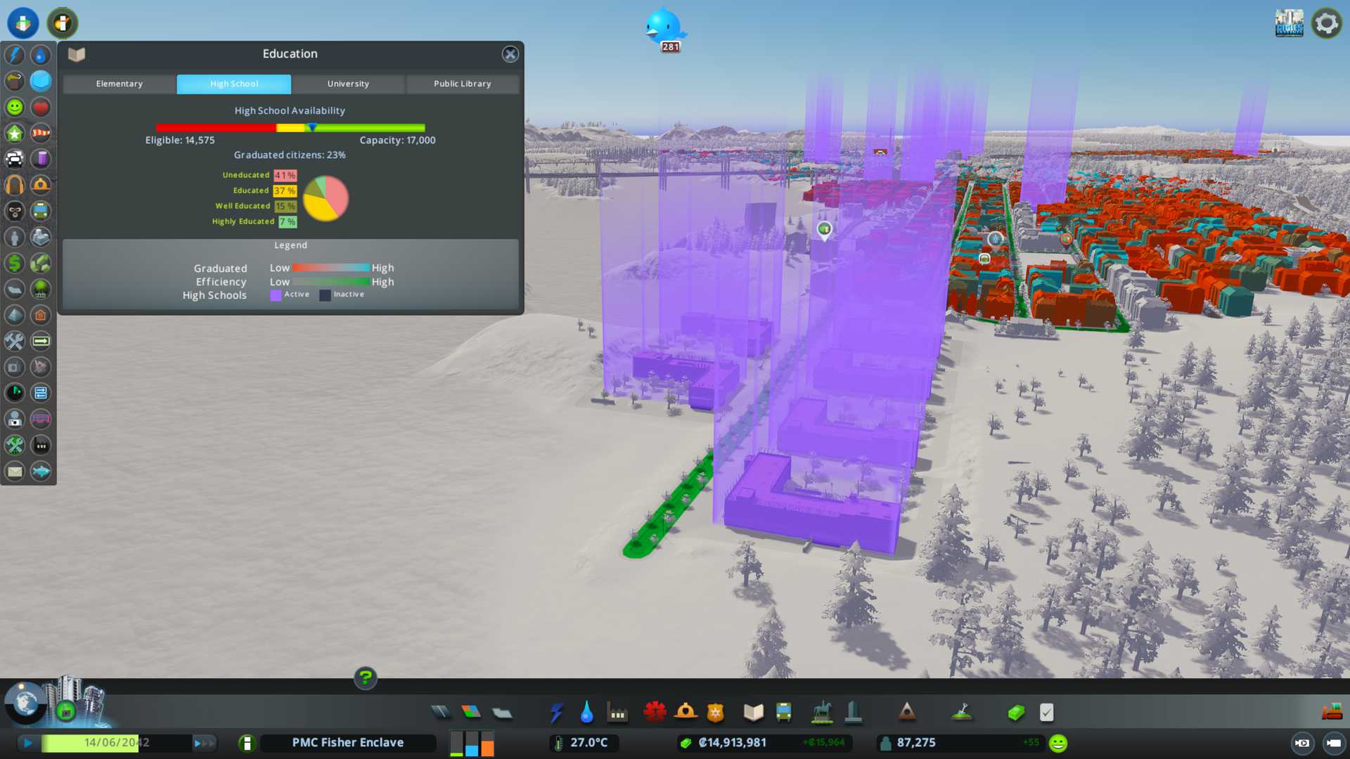 2022-08-14T09:44:00Z Tried to add office 4 x 4 unit square grid back to see how many educated people we have. It was 80 worker office and 0 jobs available when it was level 2 and upgrading to 3. Hmm ok so I'll keep adding some offices until we start to have problems with highly educated people.