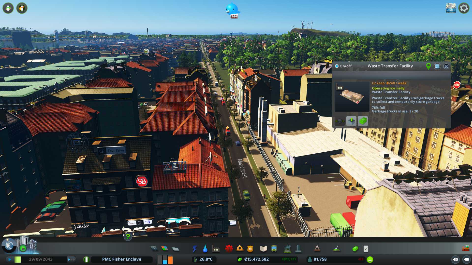 Waste transfer facilities all three of them by PMC Residential 5 district are overwhelmed, they are full "all the time". Dunno if the waste processing complex is too far away or what is going on. The transfer facility capacity is only 250k and if I understood correctly one garbage truck is 50k, hmm not sure about these numbers but that capacity doesn't last long if this is the case.