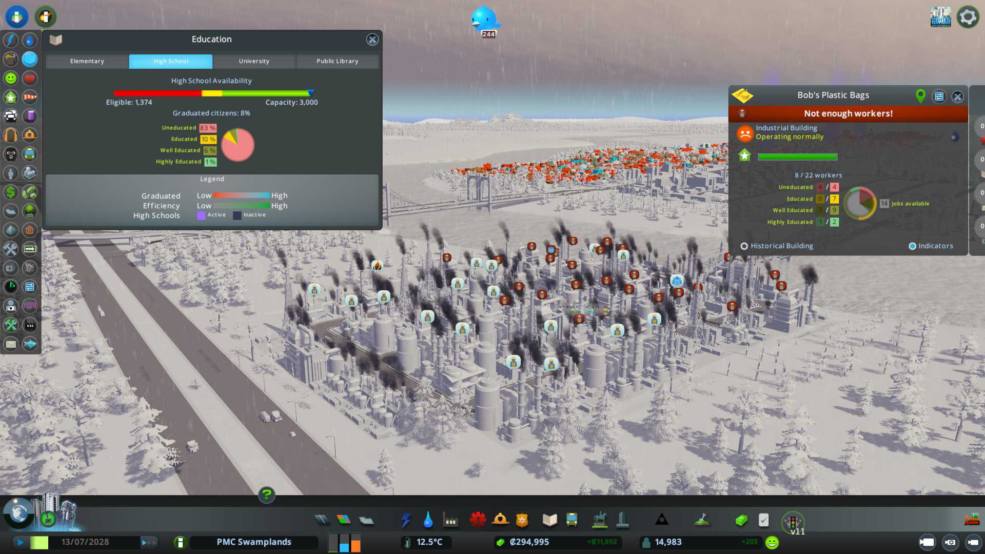 Hmph I'm not sure what to do with that. Shall we just run the city "as is" without growing it on time acceleration until we have enough educated workers for these jobs?