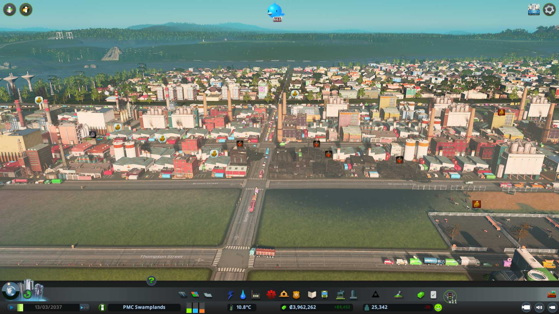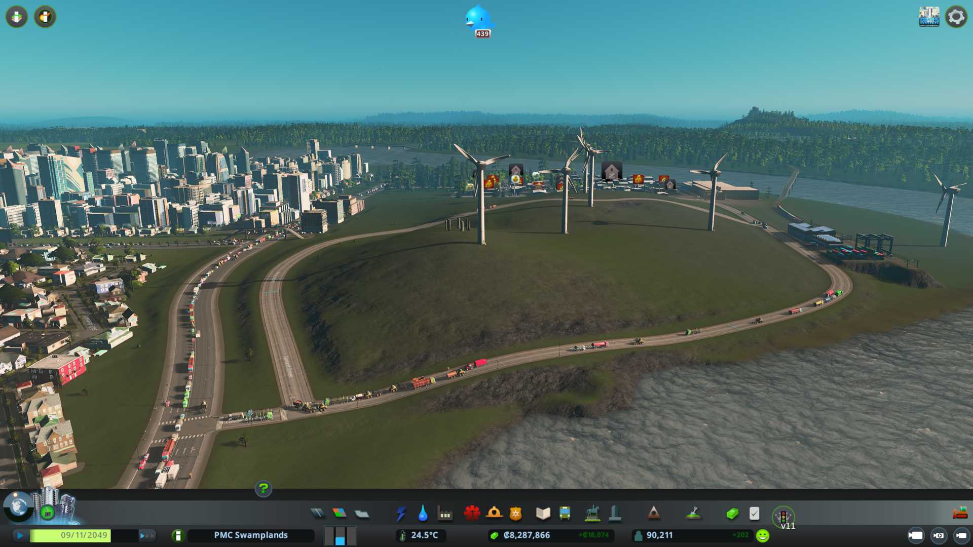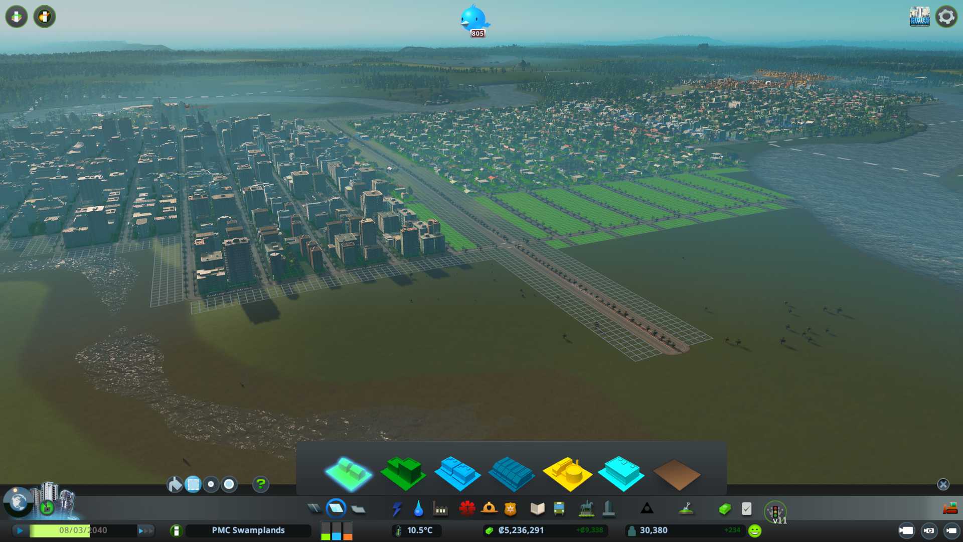 Okay taxes is on and landfill placed, now lets continue the long growth phase until we reach high density zones so we can really start busting some heads