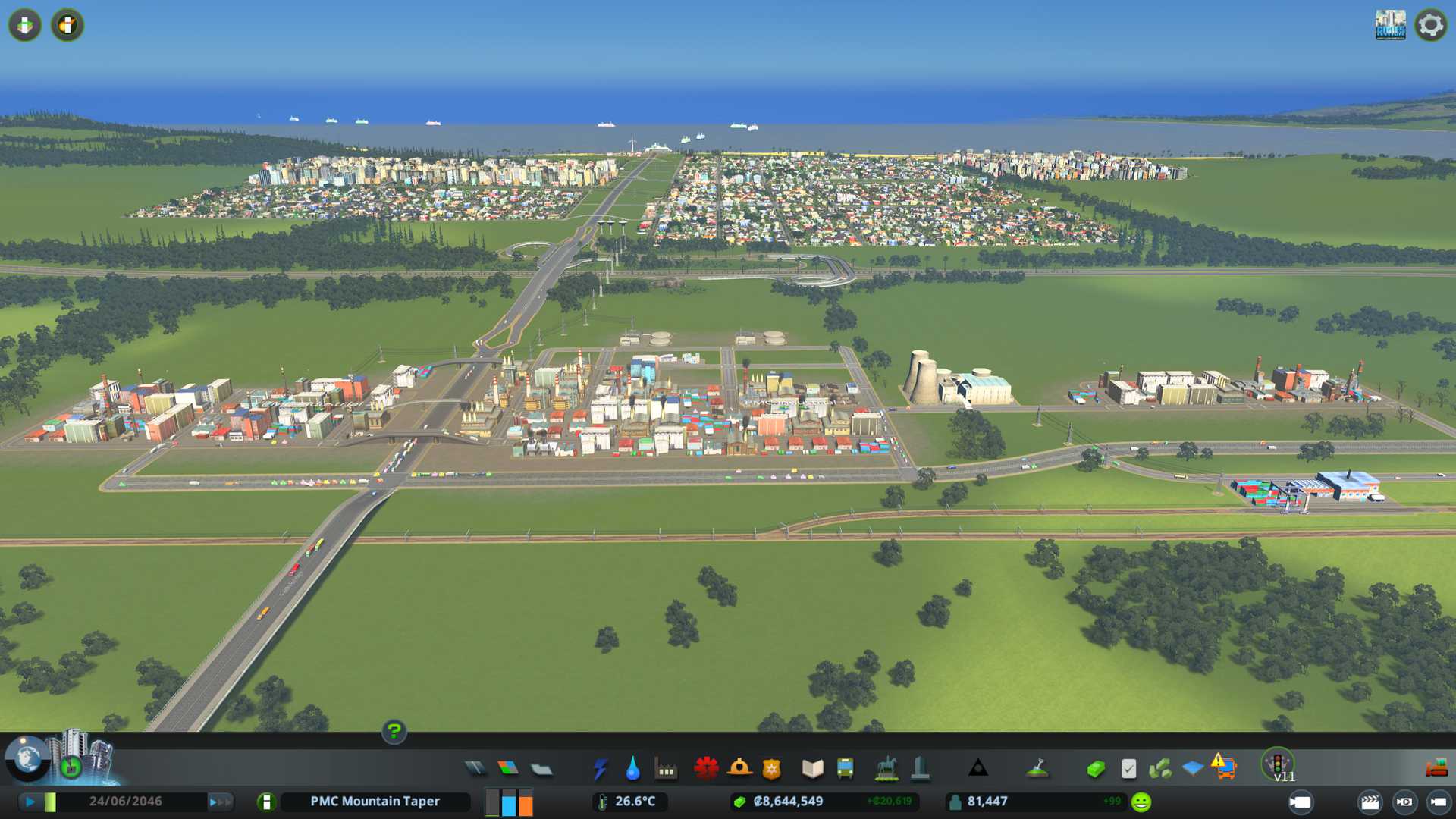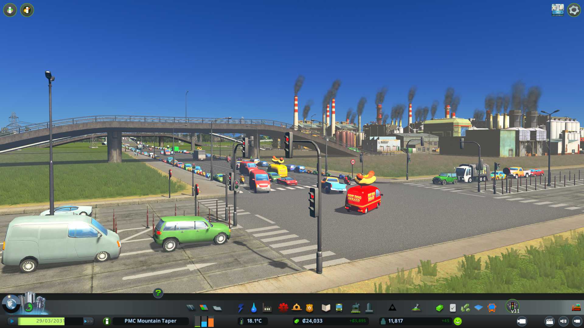 2022-08-25T03:10:00Z Amazed how good the traffic is flowing in PMC Industrial 1 district area, traffic flow 86% now which is, something else. A lot of demand for jobs, but still scared of just spamming industrial zoning.
