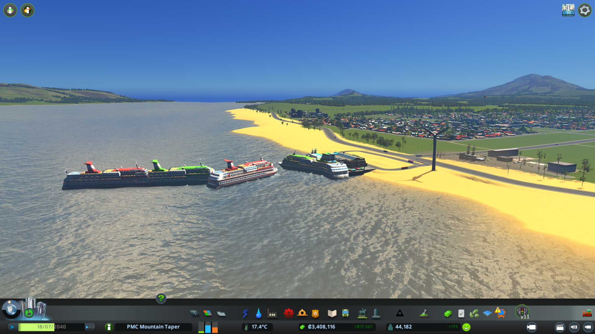 Created passenger ship harbor, this also helps a bit with new citizens moving into our city. Then started to create a new residential district.