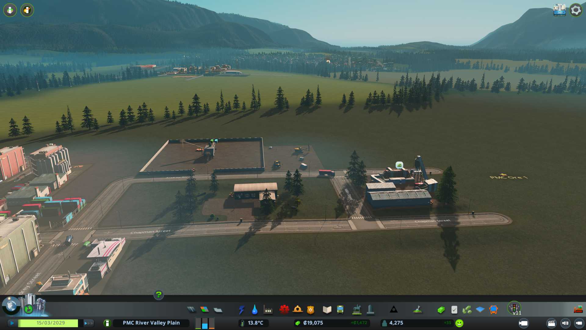 Created my first districts for PMC Residential 1, PMC Industrial 1 and PMC Commercial 1. Placed fire station, police station and health clinic.