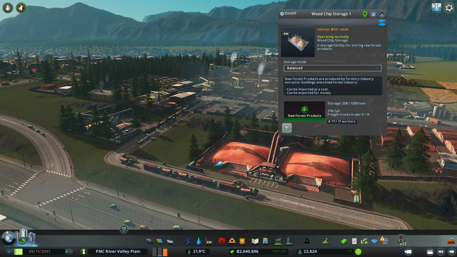 2022-08-26T04:47:00Z PMC Forestry 1 district reached level 2. Now I get to buy new stuff, biomass pellet plant, furniture factory, saw dust storage, forestry workers barracks and small tree sapling field.