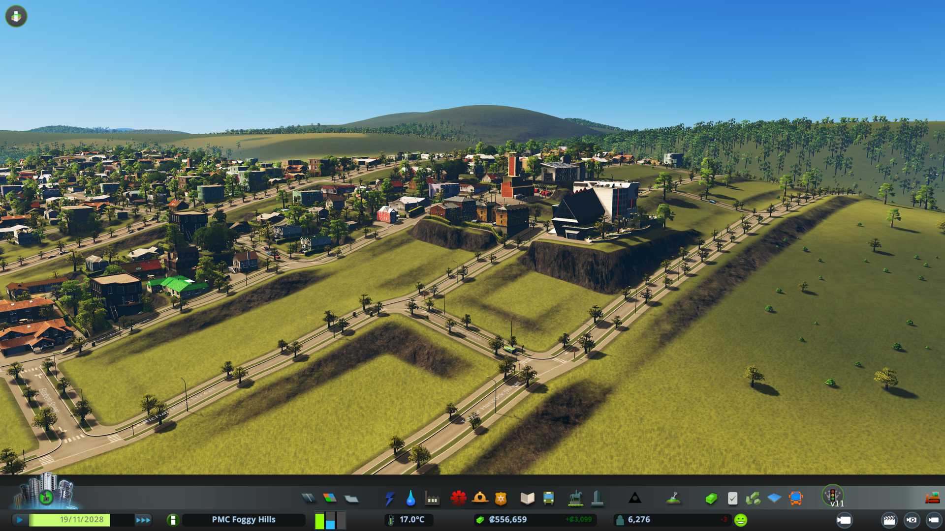 Turned on taxes to 12% for industrial, low density residential and commercial. Purchased elementary school and landfill site. Did not unpause game from this point, I need to be hands on this one, but now I'm so thirsty and hungry that gotta go grab that days first meal ...