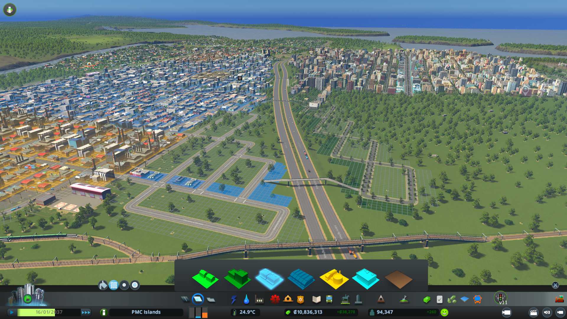2022-09-09T06:42:00Z New Cities Skylines building day has started, just woke up and finished morning computer chores, have not eaten days first meal yet, firing up Cities Skylines and continue playing right away, I want the game to run good on 3x time acceleration speed when I'm eating heh.