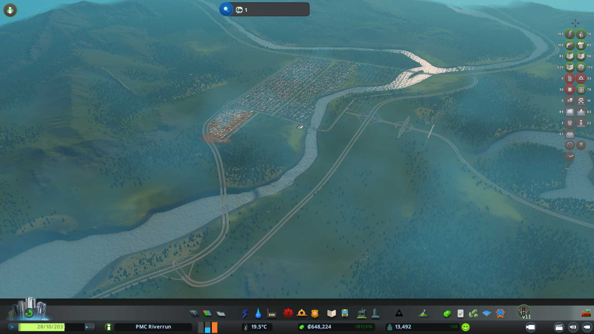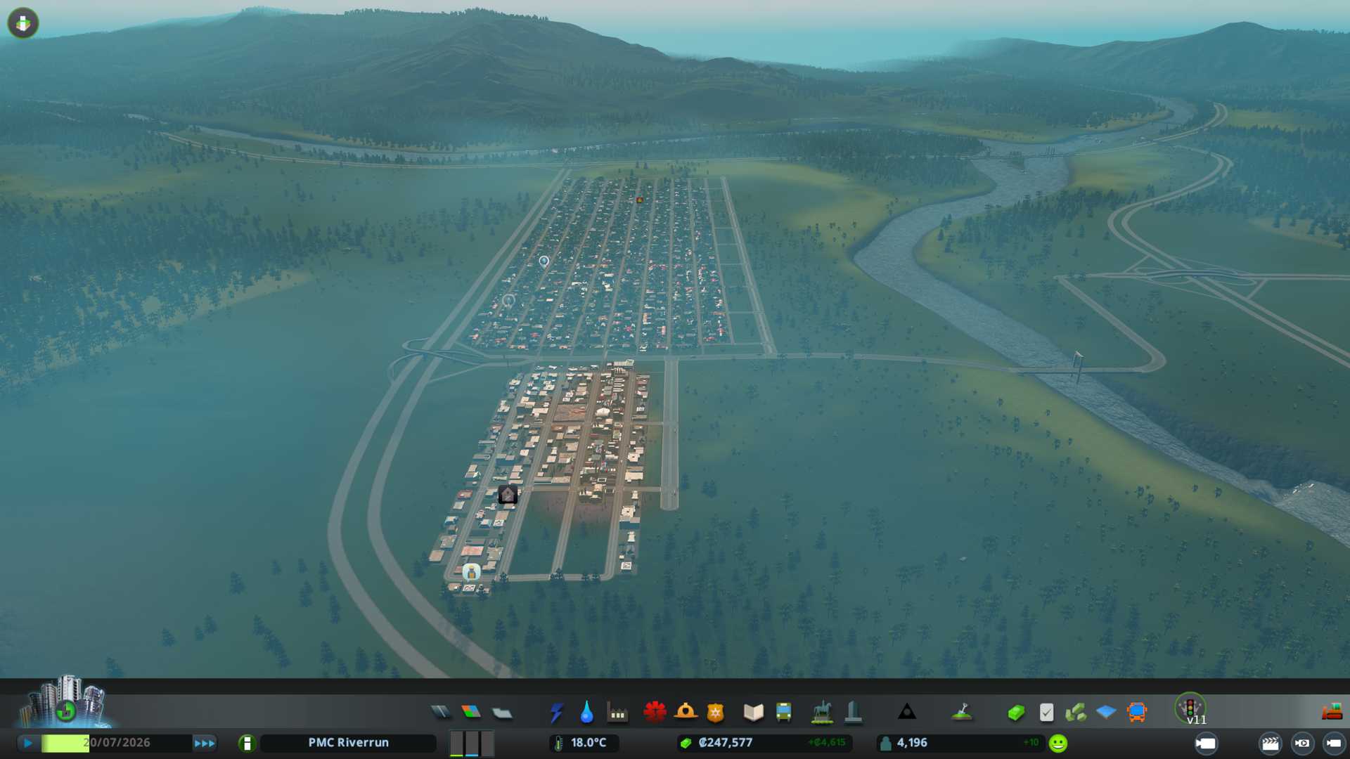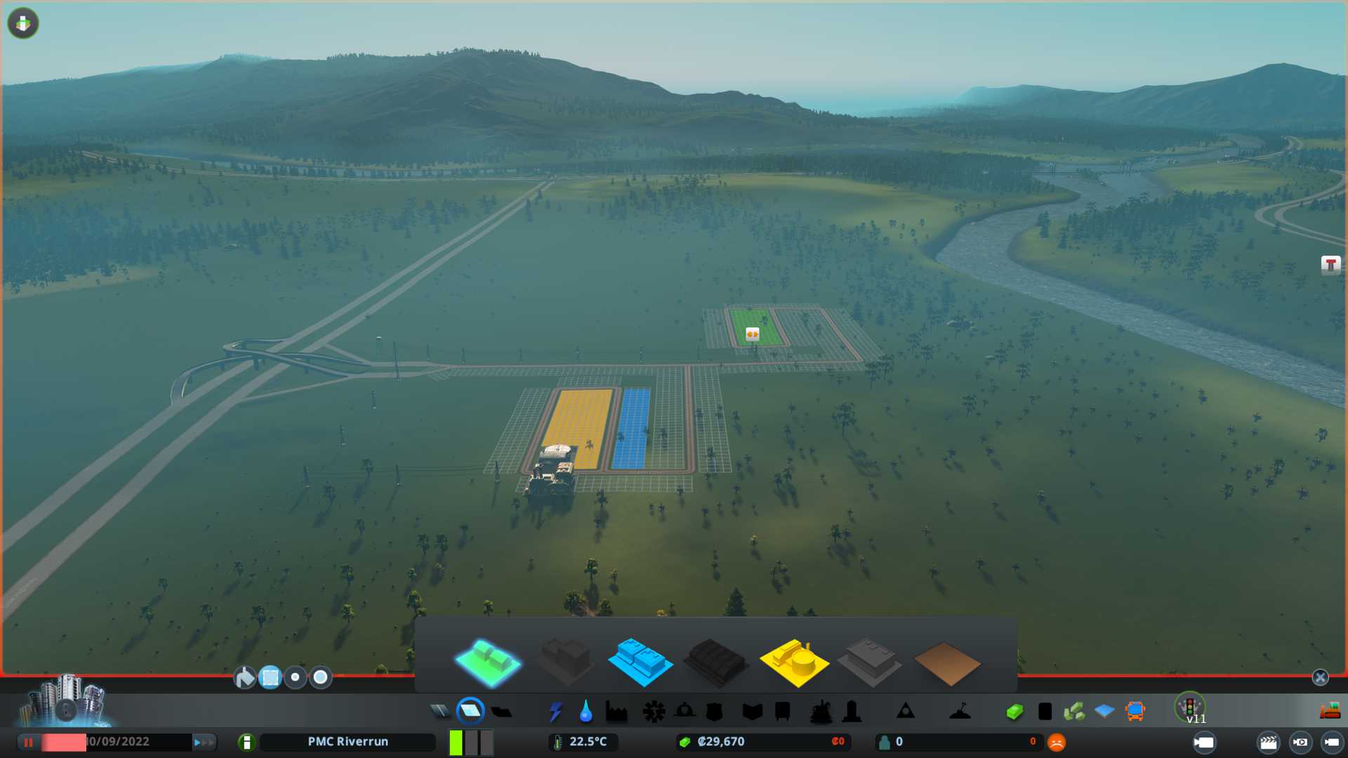 Riverrun name sounds bad, rivers == bad for city building, so really scared when loading this one up. Base theme is boreal which I like (except the ugly morning dew / fog crap).
