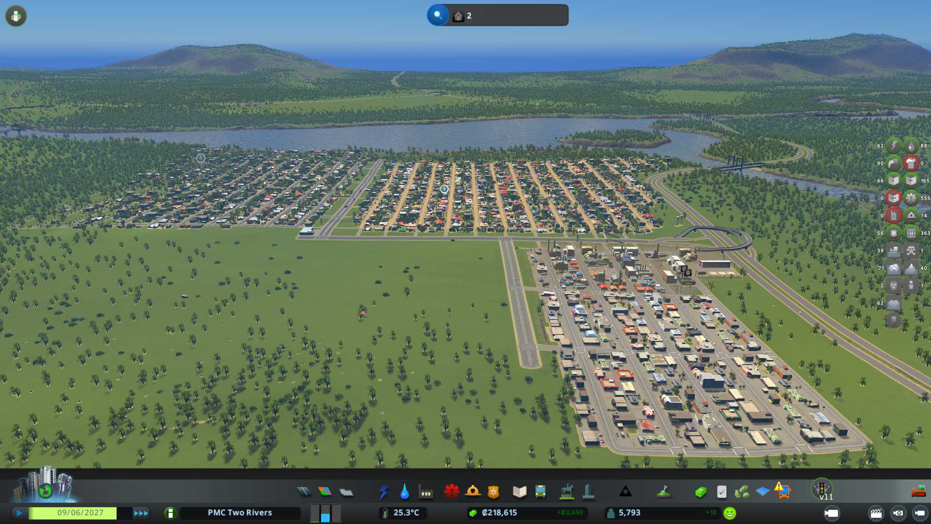 2022-09-11T12:50:00Z Started savegame on Two Rivers, all but ship outside connections and natural resources, suitable area for building 78%, base theme: temperate.
