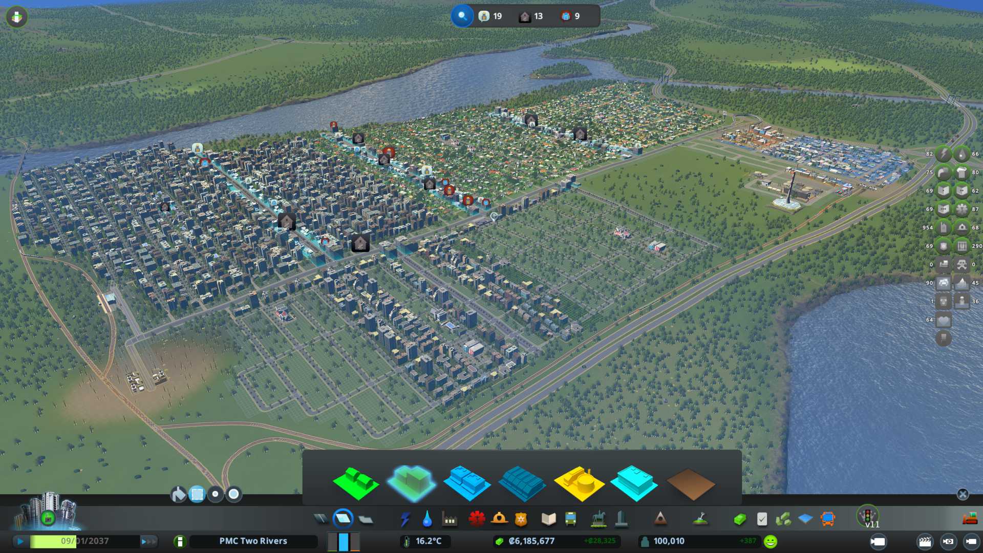 I built this nice little expansion for our high density residential zoning. Looking at population now 77k, wonder if that is enough to push us over our goal